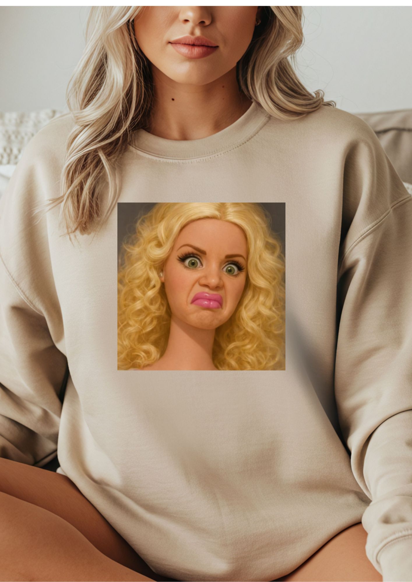 Lalka śmieszna kręcone włosy blond